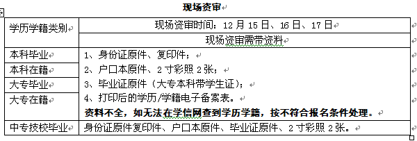 本科毕业及本科在籍、中专及技校毕业学员于2018年12月17日早上8:00至下午18:00