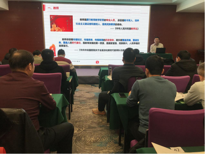 2020年12月11日下午陕西能源职业技术学院党委书记刘予东给继续教育学院全体师生解读了如何成为一名新时代下的好教师。参会人员有继续教育学院教职工和来自40余家煤矿企业的120余名煤矿教师培训班全体学员。