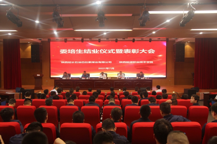 为进一步巩固校企深度融合发展教育教学成果,切实践行为行业企业深度服务的宗旨。7月8日,我校与陕西延长石油巴拉素煤业有限公司在巴拉素煤业公司大礼堂举行2019级订单委培生结业仪式暨表彰大会。校党委委员、副校长赵新法,陕西延长石油矿业有限公司党委副书记董建成、人力资源部部长马军强、人力资源部主管吕雪锋、陕西延长石油巴拉素煤业有限公司董事长、总经理王春刚、副总经理王宇、人力资源部经理张佼、继续教育学院党总支书记赵亚玲、继续教育学院相关同志及巴拉素煤业各部门负责人、委培生代表参加会议。会议由继续教育学院党总支书记赵亚玲主持。