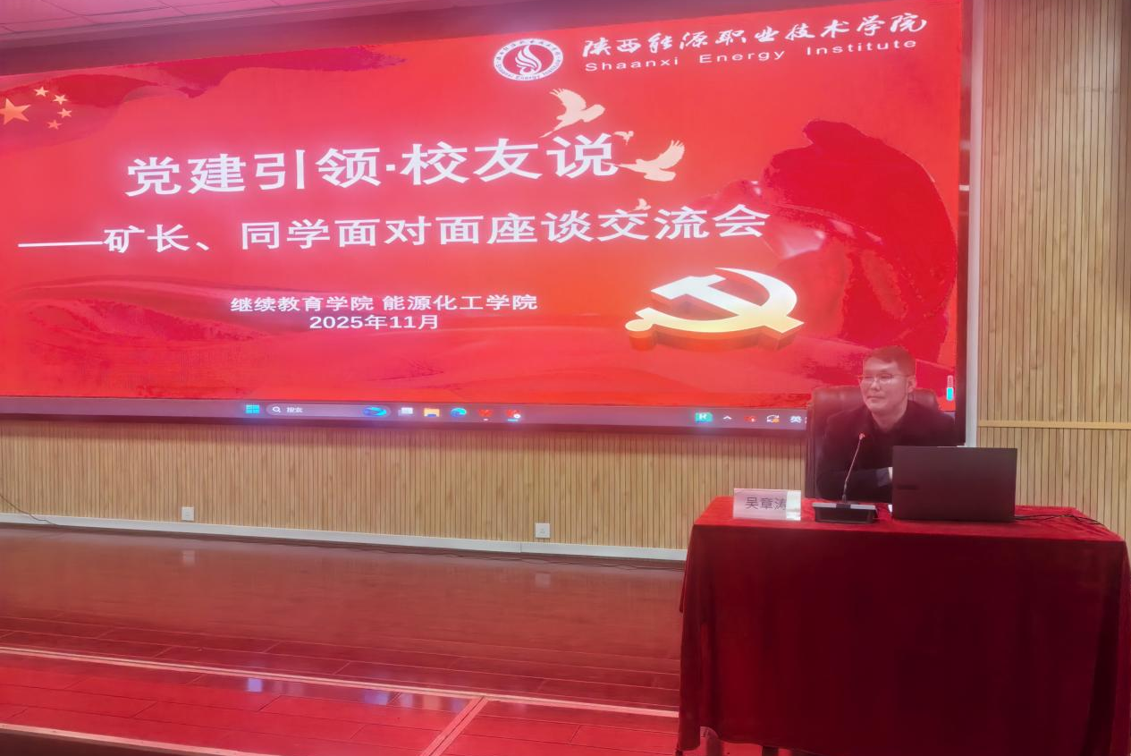 为增进学校煤炭类专业学生与企业校友的联系,树立奉献煤炭的“太阳石”精神,继续教育学院党总支与能源化工学院党总支于11月17日在文林大讲堂举办·首届“校友说——矿长、同学面对面”座谈交流会,邀请了我校校友陕西彬长孟村矿业有限公司副总经理、总工程师马小辉和陕西彬长小庄煤矿地质防治水副总工程师吴章涛两位专家做交流分享。能源化工学院党总支书记陶燕,继续教育学院党总支副书记吴海龙及相关工作人员参会,吴海龙主持活动。