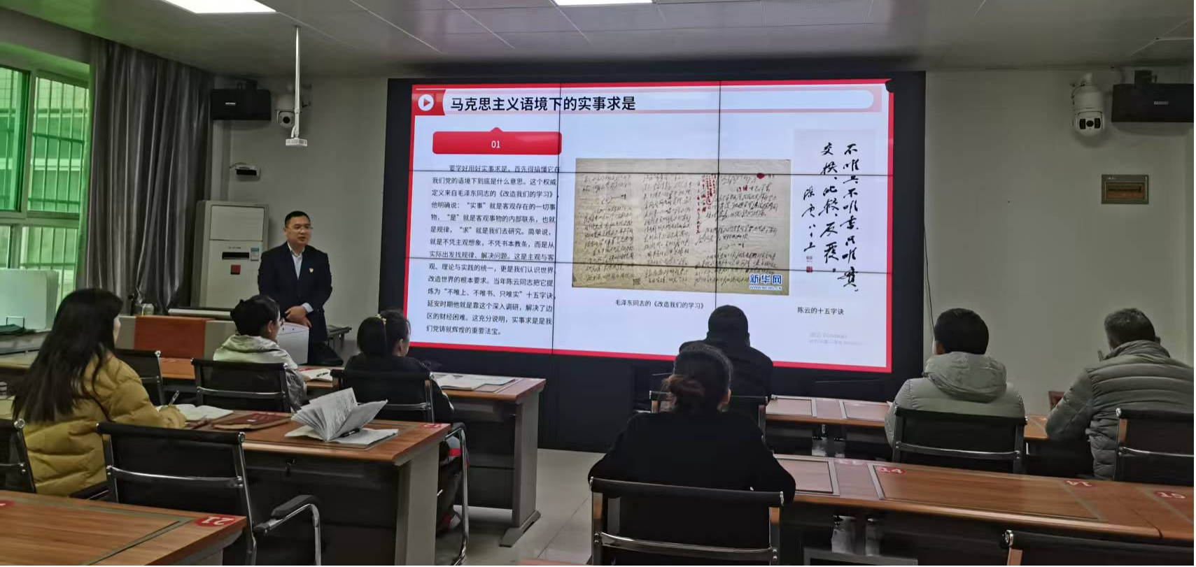 12月5日下午,继续教育学院党总支在培训楼206教室组织全体党员,开展了一场主题鲜明、内容深刻的专题党课学习活动。本次党课由学院党总支副书记吴海龙主讲,以“论作风建设”为核心主题,旨在深化全体党员对党的作风建设极端重要性的认识,厘清党性与作风的内在联系,并探讨在实践中如何弘扬实事求是精神,以进一步增强党性、端正作风。