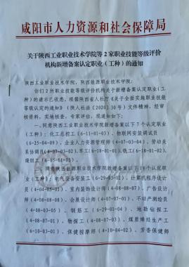 自2020年12月28日我校获批“社会组织职业技能等级评价机构”并备案23个职业(工种)(咸人社函【2020】297号)以来,我校已开展3批职业技能等级认定工作。今年9月,经咸阳市人力资源和社会保障局同意,我校积极申报新增可开展认定职业(工种)的资质,经审核资料、实地核查、专家评估,新增备案19个认定职业(工种)。