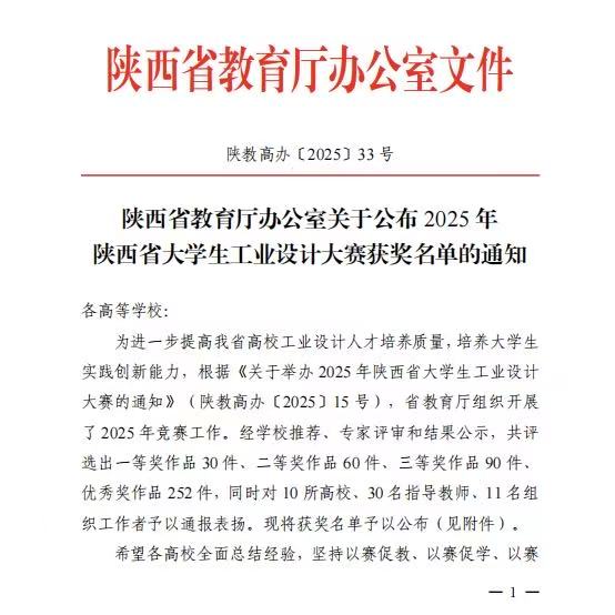 近日,2025年陕西省大学生工业设计大赛获奖名单正式公布。由我校建筑测绘学院吕彬老师指导,贾湘钰、姚雨彤、唐浴涵同学共同完成的作品《西安博物院馆藏文物文创设计》,斩获大赛二等奖。这一佳绩彰显了我校学子扎实的专业功底与创新实践能力。