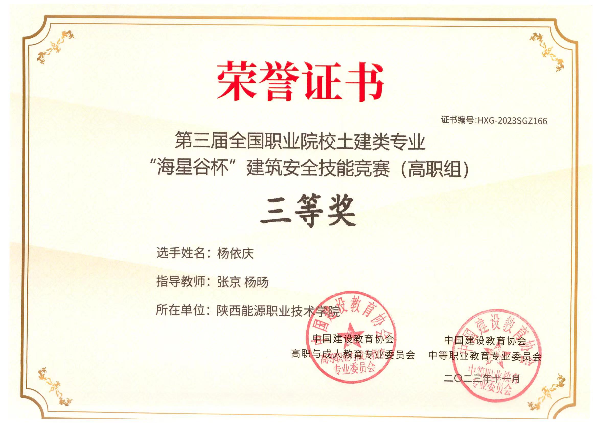 参加陕西省技能大赛视觉艺术设计、装配式建筑智能建造、数字化工程计量计价、测绘地理信息数据采集与处理、建筑工程识图、环境艺术设计、第九届全国煤炭职业技能大赛高职组矿山测量技术、“达北杯”第四届全国大学生无人机测绘技能竞赛等赛项,共获一等奖4项,二等奖7项,三等奖3项;互联网+校赛获奖1项;建工类行业赛国赛二等奖4项,三等奖1项。