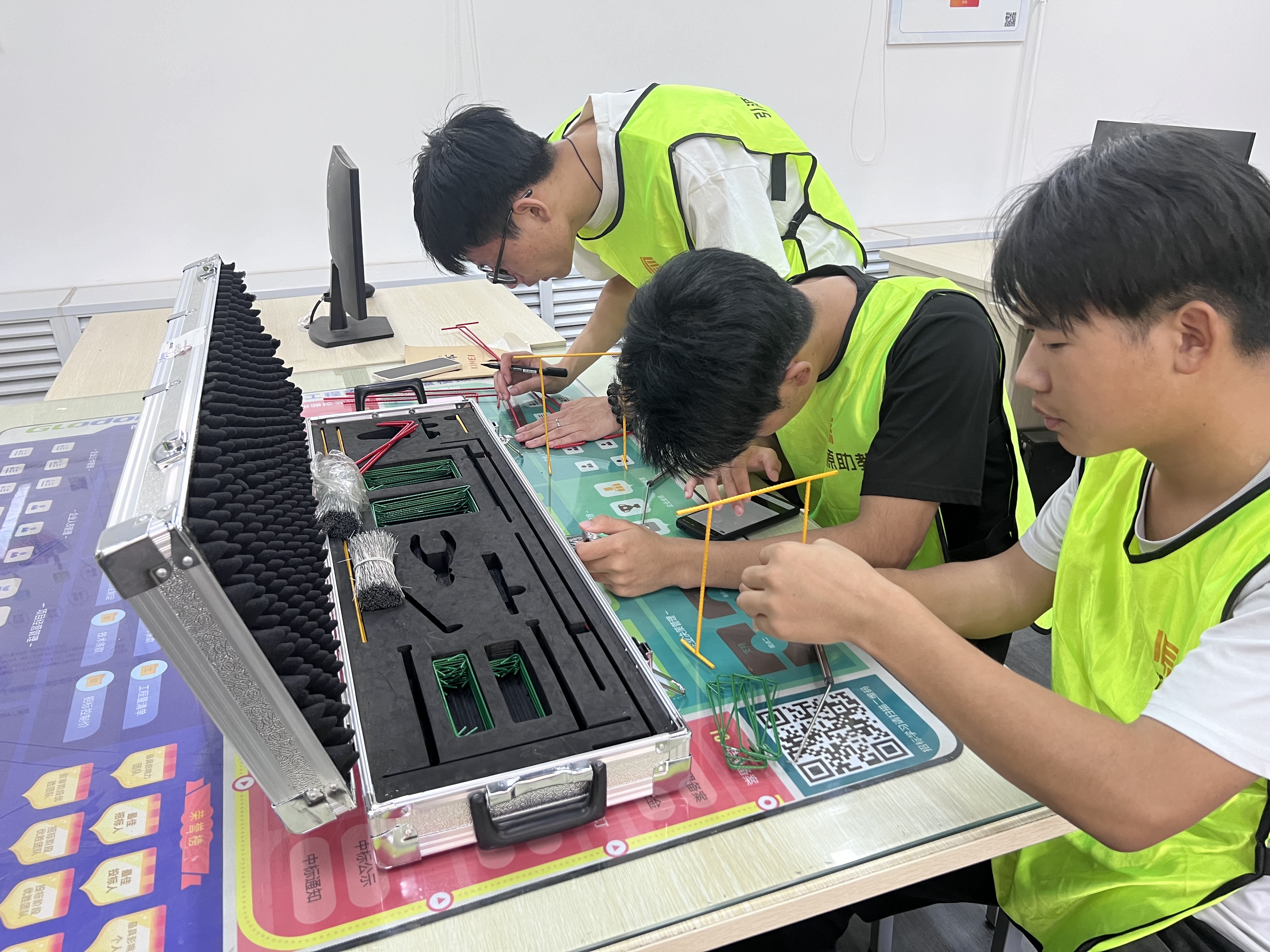 比赛共分为三个环节:第一环节是解译工程密码--识读钢筋图纸,考验学生的识图能力;第二环节是胸有成竹--绘制钢筋排布图,考验学生对规范图集的掌握能力;第三环节是精益求精环节--绑扎钢筋模型,考验学生动手实践能力。经过3个小时的激烈比赛,最终由王思龙、朱航、方守贤组成的团队获得一等奖,大赛也圆满落幕。
