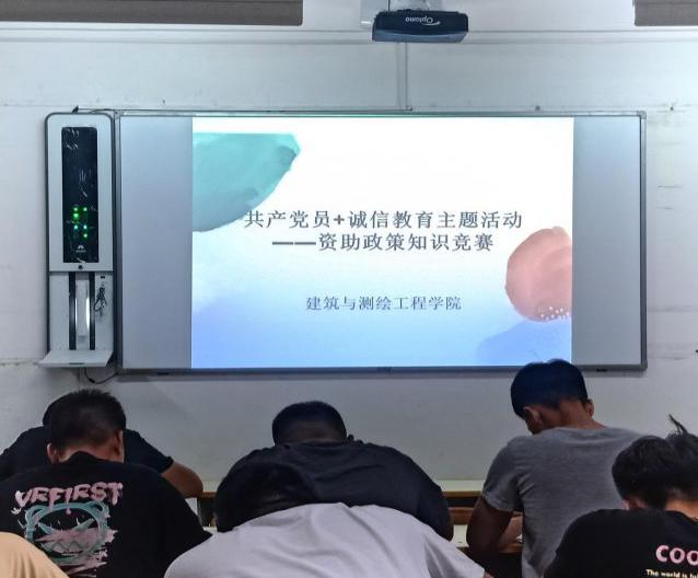 为了营造优良的育人环境、普及资助政策知识。6月9日利用晚自习时间,建筑与测绘工程学院开展了“学生资助政策知识竞赛”。旨在明确广大同学们对资助相关内容的了解和认识,丰富同学们的精神文化生活此次活动共计60余人参加。