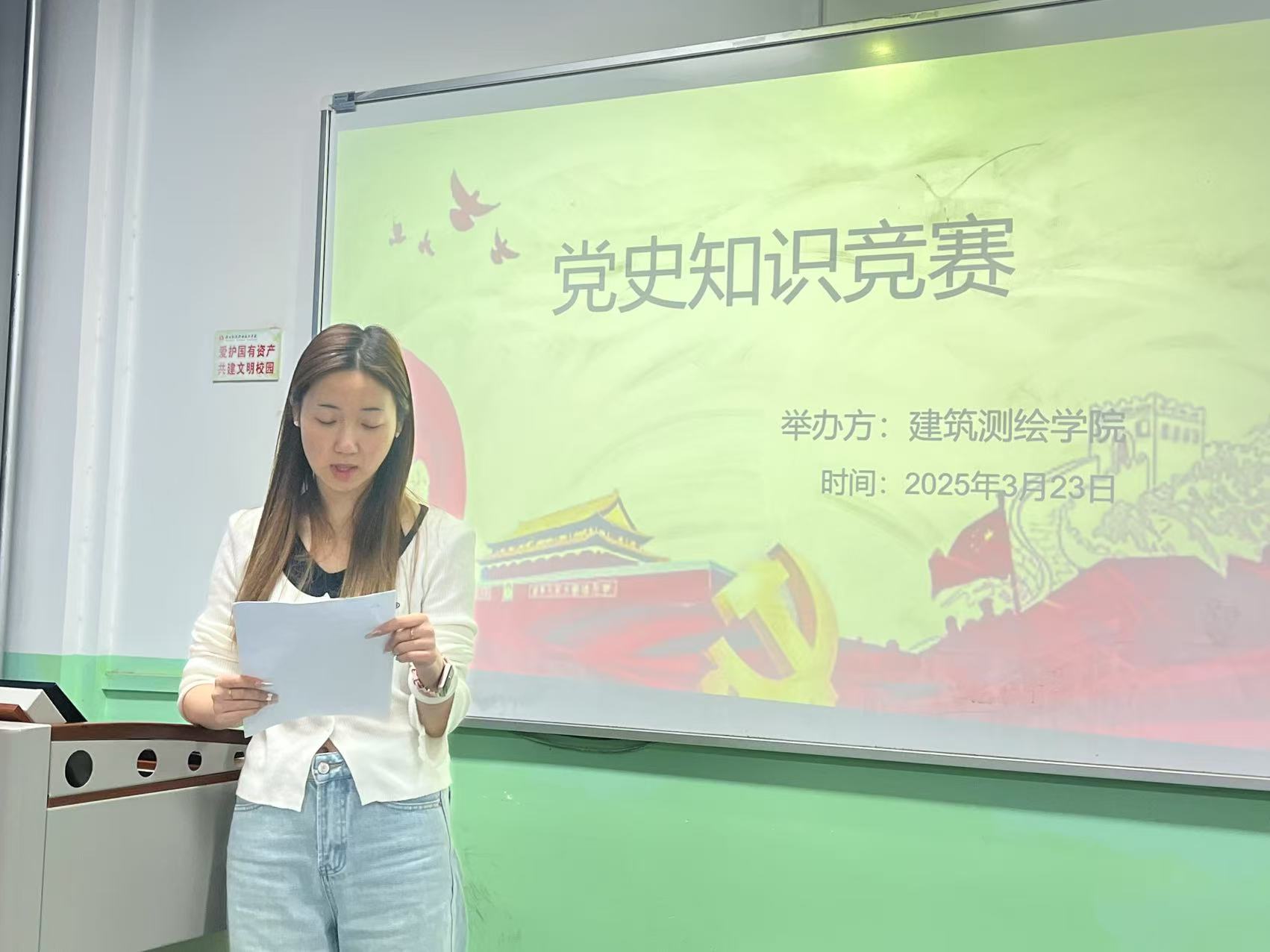 2025年3月23日,建筑测绘学院成功举办了主题为“学党史·强信念·跟党走”的党史知识竞答比赛。此次活动是学院“红色铸魂”系列教育活动的重要组成部分,旨在深入学习贯彻党的二十大精神,扎实推进党史学习教育常态化,激发同学们的爱党爱国情怀,引导学生树立正确的世界观、人生观和价值观。