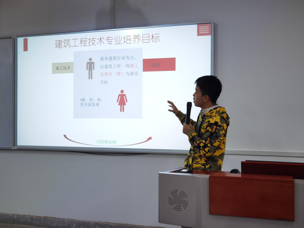 随后,各教研室主任分别从专业基本情况、培养目标、实验室概况、校友所获荣誉、行业发展、就业前景等内容对各专业做了简明介绍。张京老师希望同学们通过专业课的学习,能够成为“精施工、善管理、懂设计、通预算”的专业技术型人才。高永涛老师要求同学们要准确定位自己的能力目标,对自己的所学专业清晰定位。康俊鹏老师期望同学们以积极饱满的心态度过美好的大学生活。沟增辉老师为新生送上寄语“设计来源于生活,最终回归于生活,要一点一滴积累并善于观察”。
