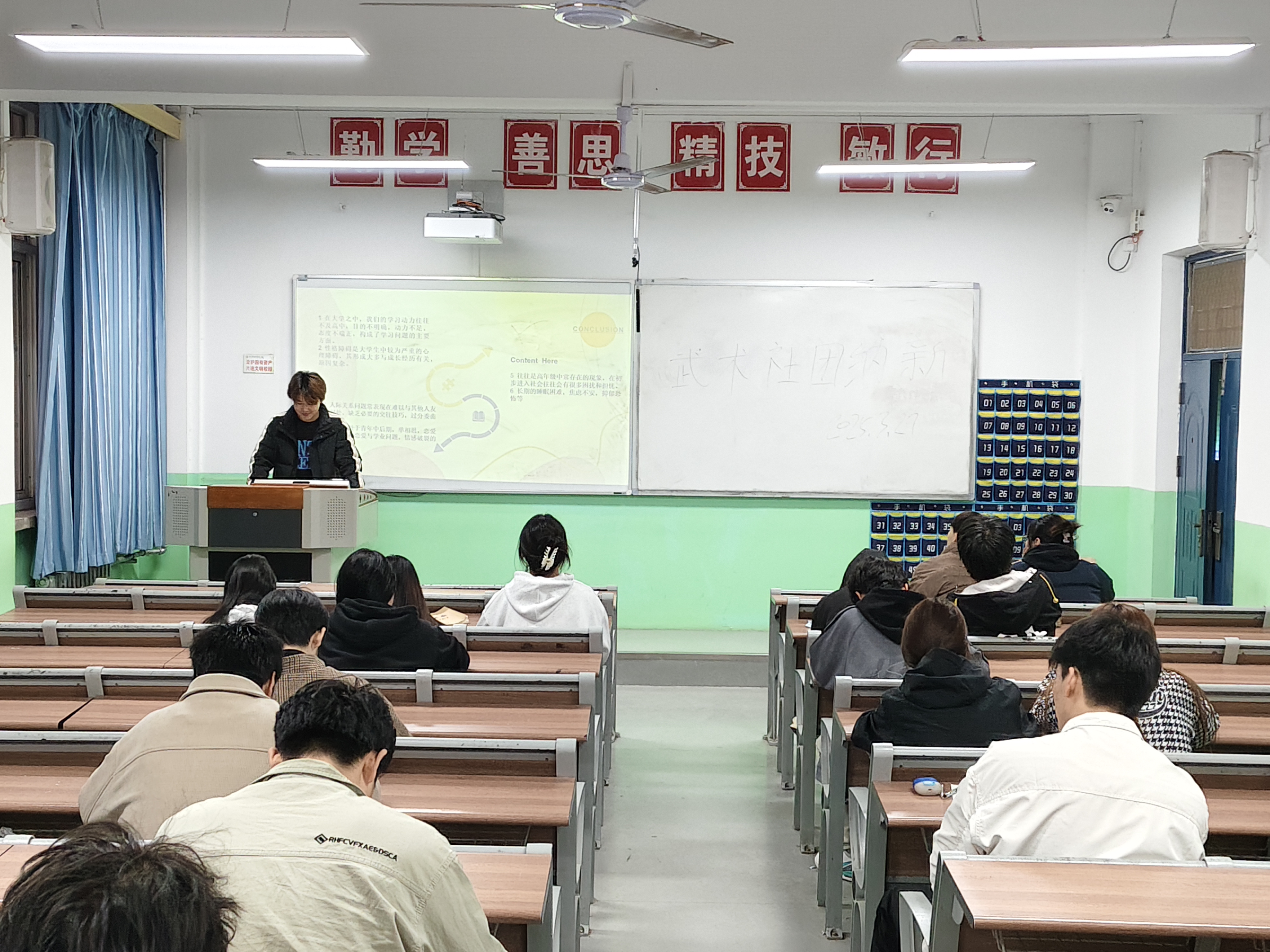 2025年5月7日晚自习建筑测绘学院心理健康部门在教学楼102教室组织开展每周例会,主要参会人员有心理辅导员李雪洁老师,心理健康部门部长、干事及各班心理委员,例会主要分为以下三部分内容: