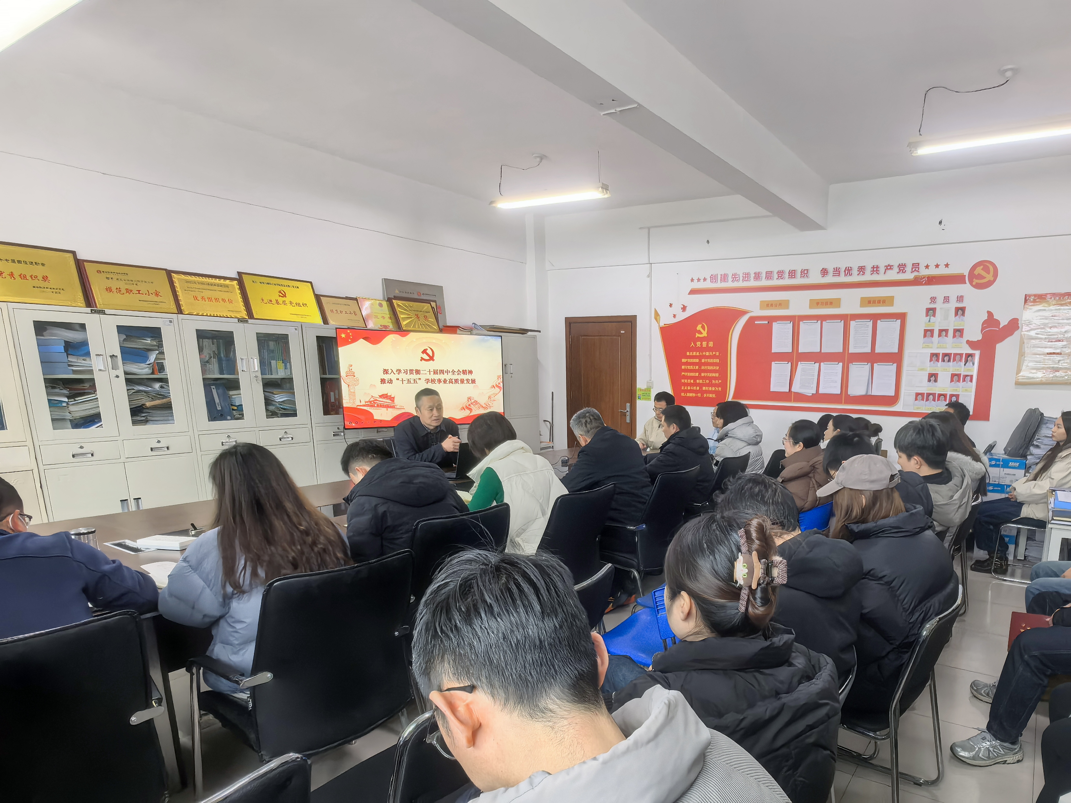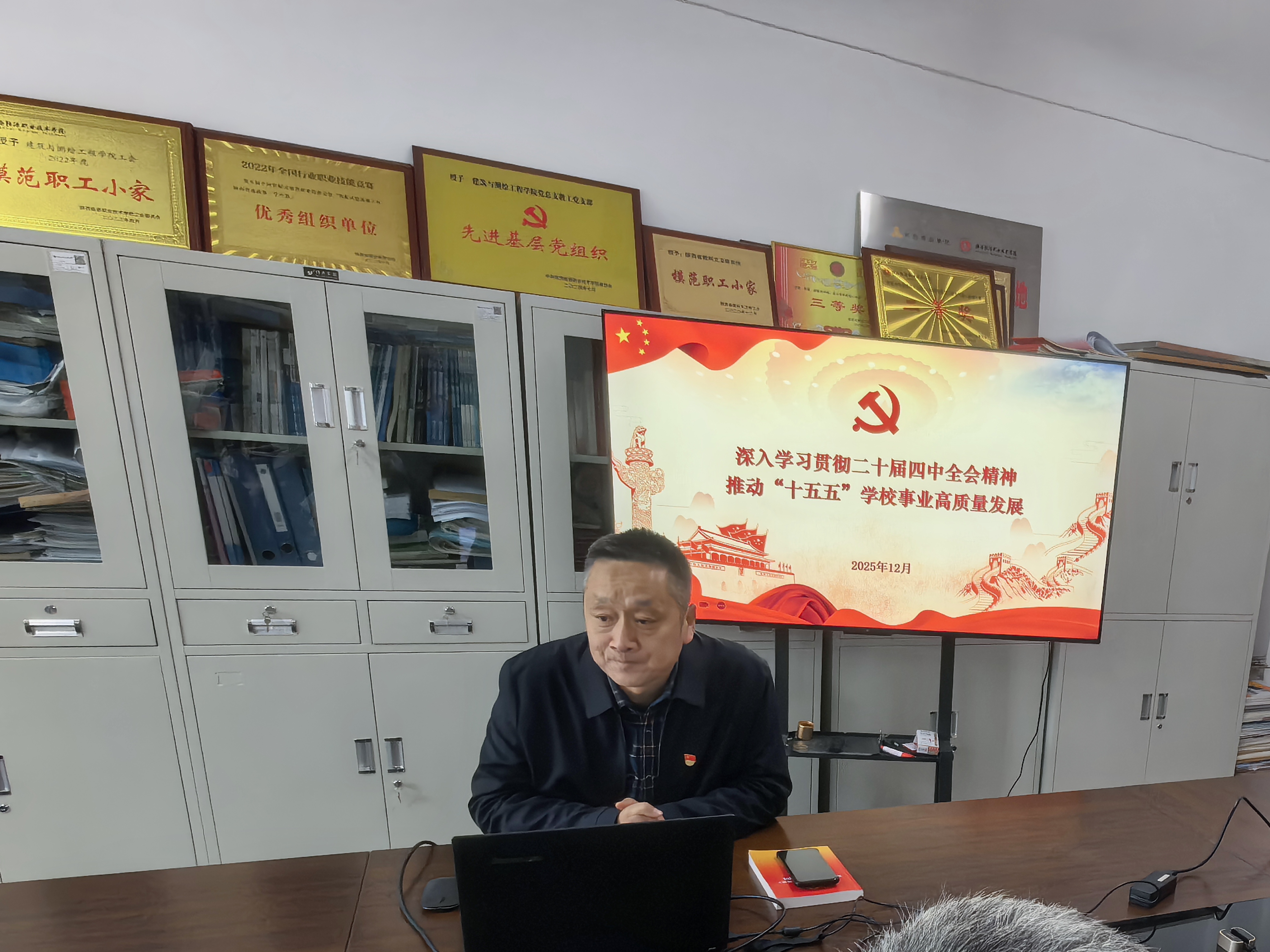 2025年12月31日,刘浩副校长为建筑测绘学院全体教职工进行以“深入学习贯彻二十届四中全会精神、推动“十五五”学校事业高质量发展”为主题的二十届四中全会精神宣讲。