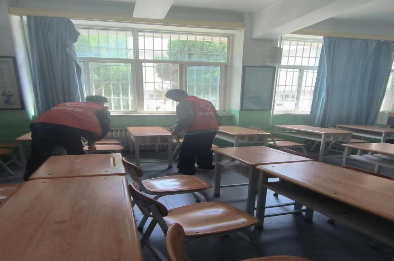 晚自习期间志愿者对教室卫生进行了检查,包括桌椅摆放、地面清洁、黑板擦拭和窗户清洁等方面。志愿者同学也积极引导其他学生养成良好的卫生习惯,共同维护教室卫生。