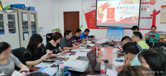 首先为每位老师发放《民法典》一书,接着与会老师齐声奏唱国歌,随后王洁介绍了《民法典》的诞生历程,学院党总支书记买中傲领学了《民法典》总则中的基本规定,对《民法典》的主要内容进行了讲解,强调了《民法典》对推进全面依法治国、建设社会主义法治国家,更好的保障人民权益的重大意义,领学后,全体教职工进行了《民法典》学习讨论和知识测试。