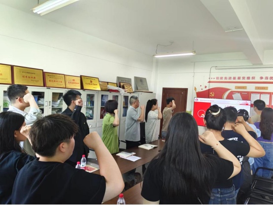 会上,师生党员齐聚一堂,共同分享交流工作学习体会。肖明宇和王洁送上了对2024届全体毕业生党员的深情祝福与期望,鼓励大家要追求理想,坚持学习,在党的创新理论指引下不断进步、不断超越,在未来的人生道路上砥砺前行、勇往直前,展现出最耀眼的光芒。毕业生党员们则汇报了近期和毕业后的规划,感谢学校和学院的培养,并分享了自己入党的感受,表达了今后坚持以党员标准要求自己的信心和决心。座谈会最后,举行了庄重的重温入党誓词仪式。与会全体党员佩戴徽章、高举右拳、庄严宣誓,用铿锵有力的声音许下新时代新征程上的承诺。