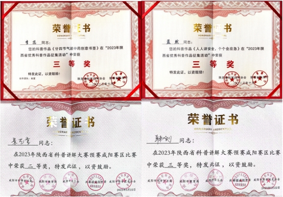 同时,组织开展第二届科普作品与科普讲解大赛,推荐优秀作品参加省市大赛,荣获2023年陕西省优秀科普作品征集活动三等奖2项、优秀奖2项,荣获2023年陕西省科普讲解大赛咸阳分赛二等奖1项、三等奖6项、优秀奖3项,取得良好成效。