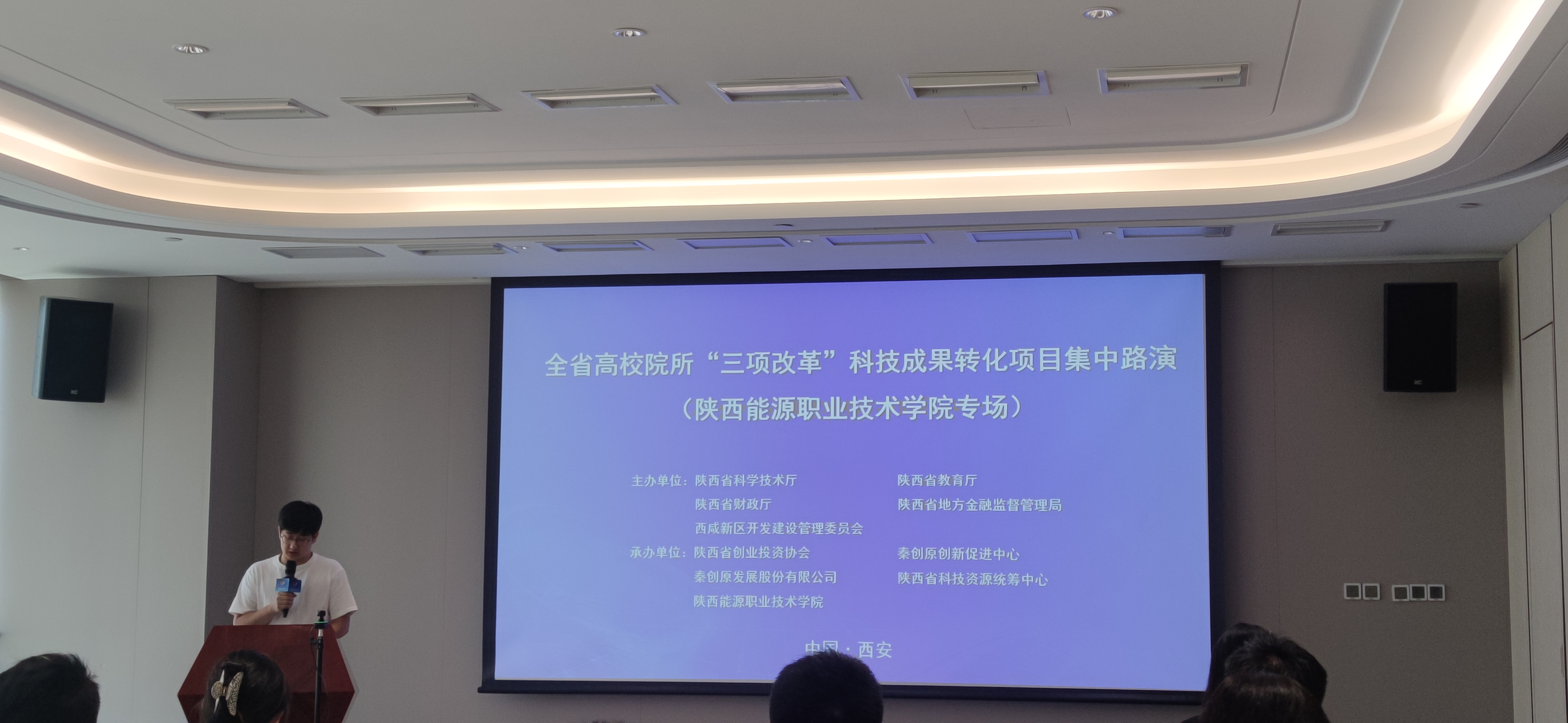 6月18日下午,由省科技厅、省教育厅、省财政厅、省地方金融监督管理局、西咸新区管委会主办,我校联合省创业投资协会、秦创原创新促进中心、省科技资源统筹中心、秦创原发展股份有限公司承办的全省高校院所“三项改革”科技成果转化项目集中路演(陕西能源职业技术学院)活动顺利举办。