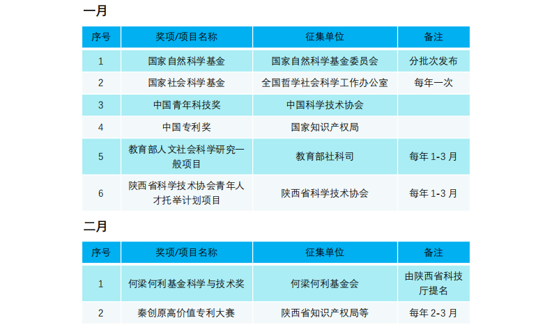 为便捷大家参与申报科研奖项与项目,提前做好规划准备,科研信息处近期整理了《2024年度科研奖项与项目申报月历》,全年申报项目(申报时间仅供参考,具体需以当年度具体的申报通知为准),一目了然,一键收藏。