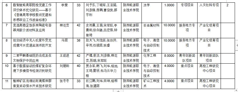根据《陕西省教育厅科研计划项目管理办法》和《陕西省教育厅办公室关于组织申报2024年度科学研究计划项目的通知》要求,学校严格按照相关程序开展此项工作,经教师申报、各部门推荐、科研信息处及专家审查评议后,拟推荐《煤矿瓦斯抽采管道泄漏智能诊断及漏点识别方法研究与应用》等4项申报2024年度陕西省教育厅科学研究计划项目一般专项项目(自然科学类);拟推荐《数字赋能中医药文化融入医药类专业课思政教育创新路径研究》等2项申报2024年度陕西省教育厅科学研究计划项目一般专项项目(人文社会科学类),并进行排序,拟推荐申报项目服务地方专项(产业化培育项目)2项,青年创新团队项目1项,重点项目(高校工程研究中心项目)2项,具体详见附件,公示5天(2024年9月4日——2024年9月8日)无异议。