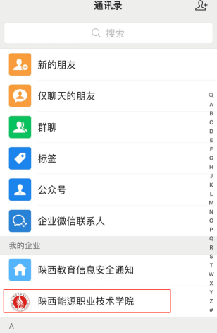 2、点击“陕西能源职业技术学院”企业微信号