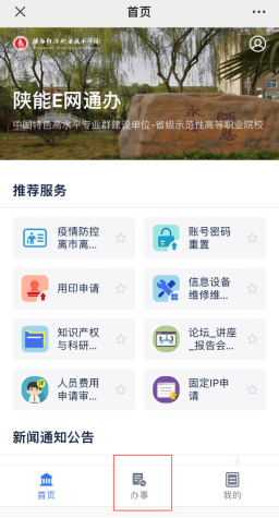 或直接在学校主页点击右上角“陕能E网通办”进入