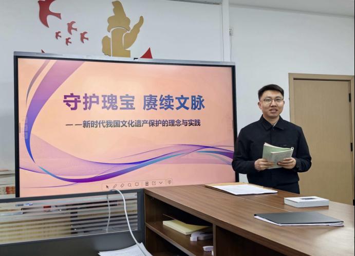 3月25日,形势与政策教研室在创新团队工作室召开2026年春季学期第二次集体备课会,本次备课会由教研室主任孙乐主持,全体教师参会。会上,王亮亮老师以“新时代我国文化遗产保护的理念与实践”主题作交流分享。王亮亮老师从三个维度对教学专题进行了系统梳理。首先,围绕“让历史文脉更好地传承下去”,他阐述了文化遗产保护对于延续民族根脉、增强文化自信的战略意义,强调了新时代保护工作的历史方位;其次,立足“我国文化遗...