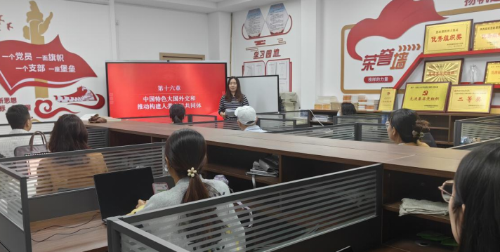 4月9日上午,习近平新时代中国特色社会主义思想概论教研室在创新团队工作室召开本学期第七次集体备课会。此次集体备课会主要围绕“中国特色大国外交和推动构建人类命运共同体“主题展开深入研讨。会议由教研室主任邵临光主持,张晗颖主讲,教研室全体专兼职教师参加