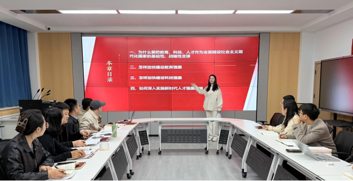 10月22日上午,习近平新时代中国特色社会主义思想概论教研室在博约堂召开本学期第三次集体备课会,主要围绕第六章《高质量发展》、第七章《社会主义现代化建设的教育、科技、人才战略》 展开深入研讨,由教研室主任邵临光主持,张晗颖、蒋俊主讲,教研室全体专兼职教师参加。
