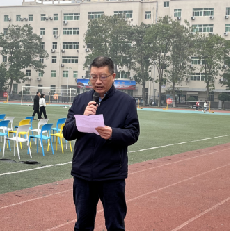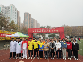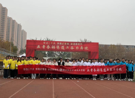 第一阶段——“学子风采展示跑”。马克思主义学院教师、各二级学院党总支书记、学工办老师和学生组成的方队绕操场慢跑,穿过“在青春的赛道上奋力奔跑”的拱门,彰显活力与风采。