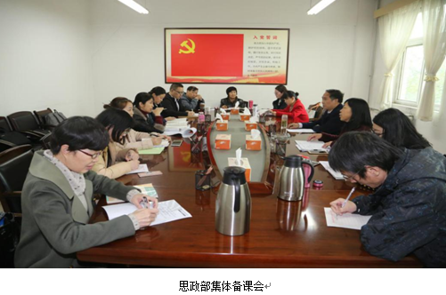 2017年11月23日下午,思政部专、兼职教师在办公楼三楼会议室召开集体备课会。备课会议由思政部主任董莉利主持,学院党委副书记郭开龙出席并作重要讲话。