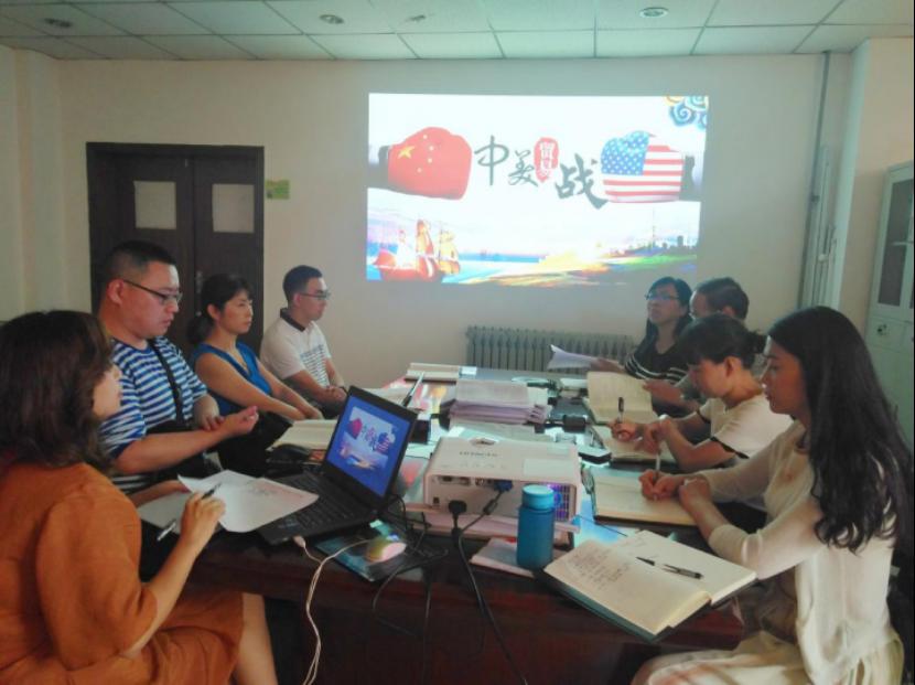 为贯彻落实《教育部社科司关于2018年秋季学期全国高校“形式与政策”课开展开学专题教学工作的通知》(教社科司函2018[155]号)文件精神,全体思政课教师于9月8日在“全国高校思政课教师网络集体备课平台”观看中国社会科学院学部委员、世界经济与政治研究所所长张宇燕研究员作的报告——“世界变局与大国博弈:正确认识妥善应对中美贸易摩擦”。为更进一步统一思想,服务教学,思政部全体教师于9月12日下午在思政部主任董莉利的主持下召开“形势与政策”集体备课活动。