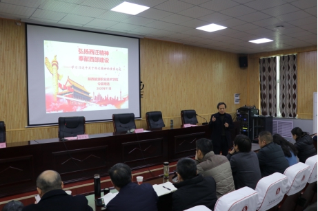 培训会正式开始。令狐培选研究员作《弘扬西迁精神,奉献西部建设——学习习近平总书记关于西迁精神的重要论述》的主题报告,从三个方面展开论述。一是习近平总书记关于西迁精神的重要论述及交大西迁,他讲述了上海交大西迁的艰辛过程及交大人发扬爱国主义精神的感人事迹,阐释了西迁精神的内涵,并讲述了北京轻工业学院西迁办学的光辉奋斗史。二是旧中国高校被迫西迁的史实、弘扬西迁精神。令狐书记讲述了一些因躲避战乱而被迫西迁的高校坚持办学、艰苦奋斗的历史。他以西北大学历经战乱、迁址办学、废立更迭的历史为例,讲述西北联大内迁,保存教育火种,大多数师生扎根西北,发展教育的爱国奉献精神。三是奉献西部建设。他说,从西安交通大学西迁和北京天津部分高校内迁的历史中,我们能够深刻感受到高等学校的命运和发展,必定与国家的命运相联系、与民族的境遇相契合。他指出,和平年代,高等学校的发展也与国家的建设发展密不可分。希望我们身为陕西人,应该从西迁精神中吸取精神养分,牢固确立听党的话跟党走的思想自觉,充分认识肩负培养优秀人才、提供技术支撑的重大责任,扎实工作,开拓创新,为祖国西北开发和建设做出应有的更大的贡献!