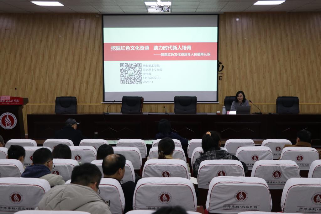下午1点半,思政课教师回到文林大讲堂,听取西安美术学院马院院长沈宝莲作《挖掘红色文化资源,助力时代新人培育——陕西红色文化资源育人价值再认识》的主题报告。沈教授从习近平总书记大力弘扬红色文化为切入点,论述了红色文化资源的内涵与特点、利用红色文化资源培育时代新人的价值和路径,并以西安美术学院“挖掘红色美术资源,助力美术人才培养”为例细致讲述了立足学校特色、贴近学生实际推进红色文化入课堂。西安美术学院“一画一课”充分发挥红色美术资源的育人价值,通过充分的挖掘、梳理和利用,使藏在美术馆和博物馆里、印在画册和书本上、立在纪念馆和广场上的各种形式的美术资源“活”起来、“火”起来,将红色美术资源充分地融入思政课教学,成功打造“思政+美术”的思政课教学品牌。沈教授强调,发挥自身优势创新思政教育要从两个方面努力:一是用好行业资源、校本资源;二是用好新媒体、新技术。她勉励各位老师心有所向、终有所得,有“为”才有“位”,鼓励大家勤耕思政田,创新思路,脚踏实地,做优秀的思政教师。