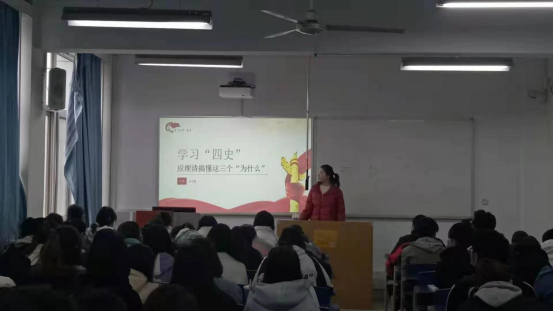 史小娟老师从“学习‘四史’应理清搞懂这三个‘为什么’”出发,以“四史”的内容为切入点,厘清“党史”“新中国史”“社会主义发展史”“改革开放史”之间的关系,帮助学生从宏观角度把握“四史”学习的意义。一个强大的国家背后要有一个强大的政权,一个强大的政权背后要有一个强大的执政党,这是近代以来中国历史带给我们的启示,也带给学生们感染和震撼。