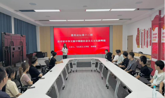 张晗颖老师以中华文脉为切入点,从传承发展中华优秀传统文化、繁荣发展文化事业和文化产业、不断提升国家文化软实力和中华文化影响力等三个方面引导学生们深刻理解“第二个结合”重要意义。活动期间同学们就“新时代如何推动中华优秀传统文化创造性转化、创新性发展”展开交流讨论,纷纷表示要始终保持创新精神,坚守中华文化立场,积极主动的成为中华文化遗产的保护者与传承人。