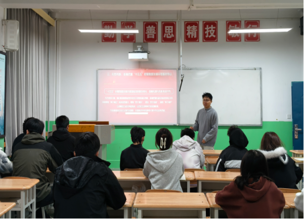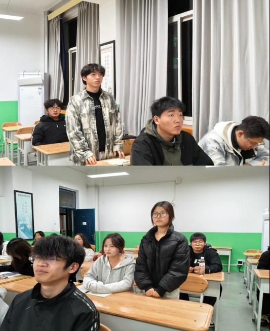 在交流环节,同学们踊跃发言,结合自身专业学习、社会实践和未来规划,分享了学习四中全会精神的心得体会,并就如何理解和投身中国式现代化实践提出了自己的思考与困惑。王振邦同学关注到理论武装的重要性,他提问:“作为青年学生,我们应如何更有效地领悟四中全会的精神要义?”王亮亮老师肯定了该问题的重要性,建议同学们要原原本本学、融会贯通学、联系实际学,将理论学习与观察分析社会现象、解决实际问题结合起来,不断提升思想自觉和行动自觉。党思洁同学聚焦实践担当,询问道:“在接续推进中国式现代化的宏伟征程中,我们大学生具体可以从哪些方面贡献力量?”王亮亮老师结合职教学生的实际,鼓励同学们立足当下,夯实专业基础,练就过硬本领,为建设技能强国担当职教人的责任。