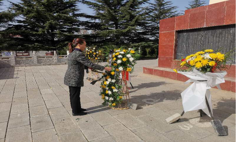 随后,思政部党支部与同行的教学党总支的其他党支部一起,向在永丰战役中牺牲的革命先烈敬献花蓝,并怀着沉重的心情,向烈士们三鞠躬。