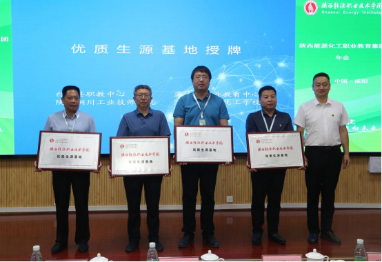 副校长刘浩(右一)分别为白河县职业教育中心、陕西铜川工业技师学院、陕西省石油化工学校、蒲城县职业教育中心授予优质生源基地牌匾