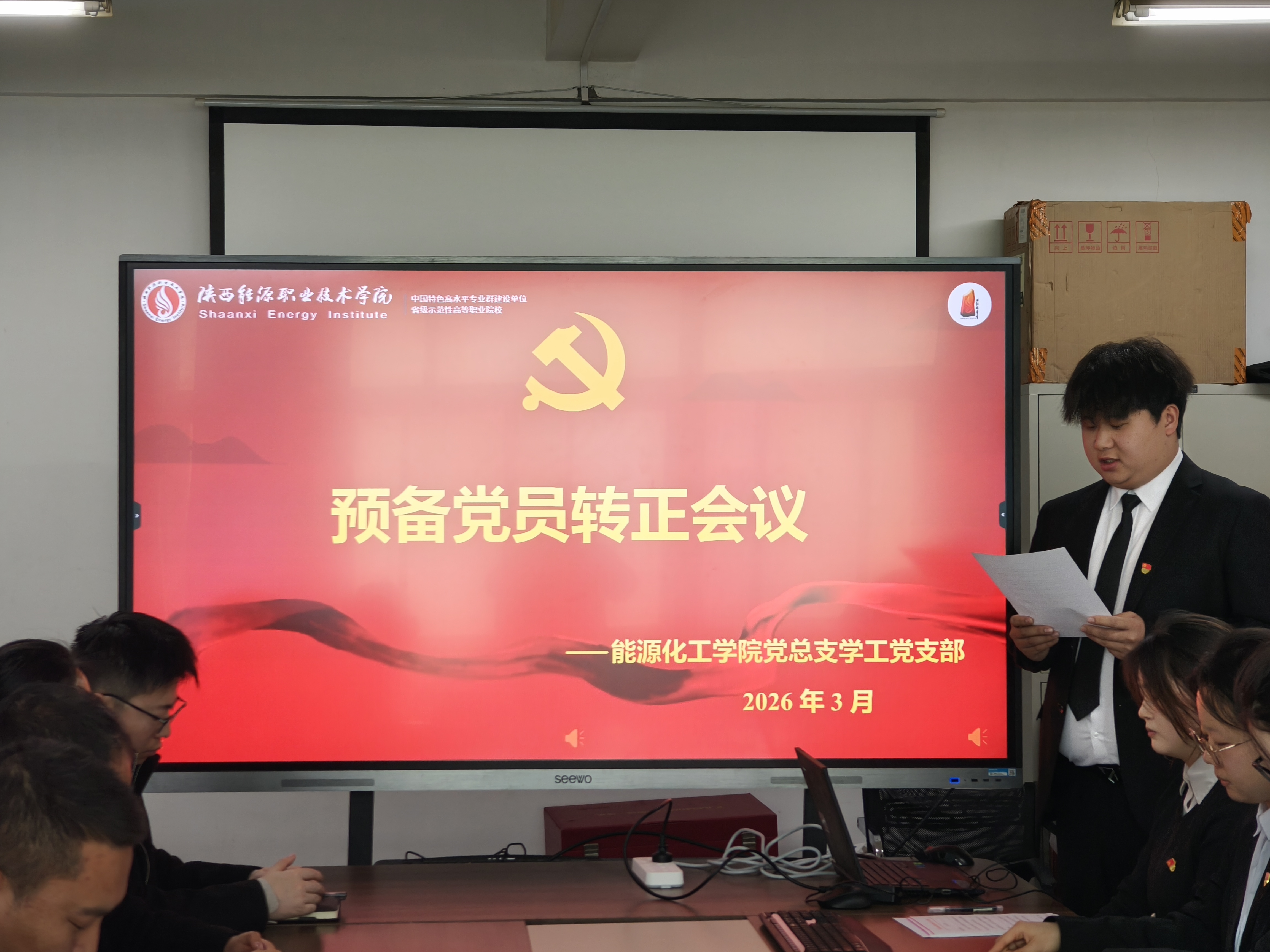为扎实推进学生党员队伍标准化规范化建设,强化党组织凝聚力与战斗力,切实把好学生党员发展“出口关”,助力青年学生党员成长成才,3月12日,能源化工学院党总支学工党支部在学办公楼409召开学生预备党员转正大会,专题讨论并表决学生预备党员转正事宜。支部全体正式党员、学生预备党员参会,会议由支部书记李鹏主持。
