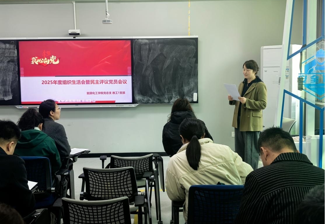 近日,能源化工学院教工1支部召开2025年度组织生活会暨民主评议党员会议。支部29名党员全员参会,其中1人通过线上方式同步参与,会议由支部书记马长玲主持。