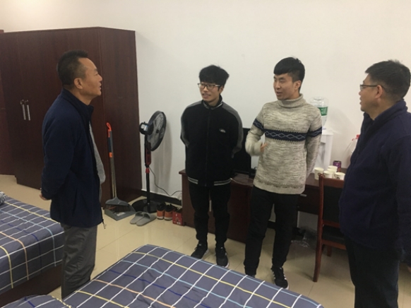 闫光准在每个矿区都深入学生宿舍了解学生的学习、工作、生活情况,并对学生的提出的问题进行了一一解答。他赞扬学生们进入角色快,工作能力强,学校为他们感到骄傲和自豪;希望学生们能一如既往扮演好角色,继续保持积极主动和谦虚好学的优良品质,力争成为合格的煤矿工作人员;叮嘱学生们注意疫情防控,照顾好个人生活,勉励学生们发扬艰苦奋斗的精神,在新的岗位再创佳绩,期盼着在毕业典礼上与大家再次见面。