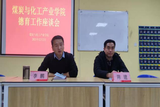 为进一步推动学风建设,加强对学生的教育引导。煤炭与化工产业学院于2021年12月2日下午6:40在培训楼405组织召开煤炭与化工产业学院德育工作座谈会。全院各班级学生代表约30余人、学工办主任李鹏老师与辅导员陈建老师参加座谈会,会议由陈建老师主持。