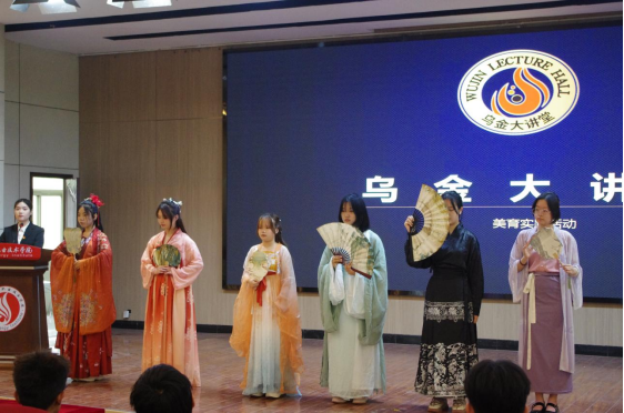 活动开始,汉服社同学身着华美的汉服,手持精美的漆扇,为在场同学带来了一场精彩的表演。她们以扇舞、扇戏等形式,展示了漆扇的多样用法和独特魅力。