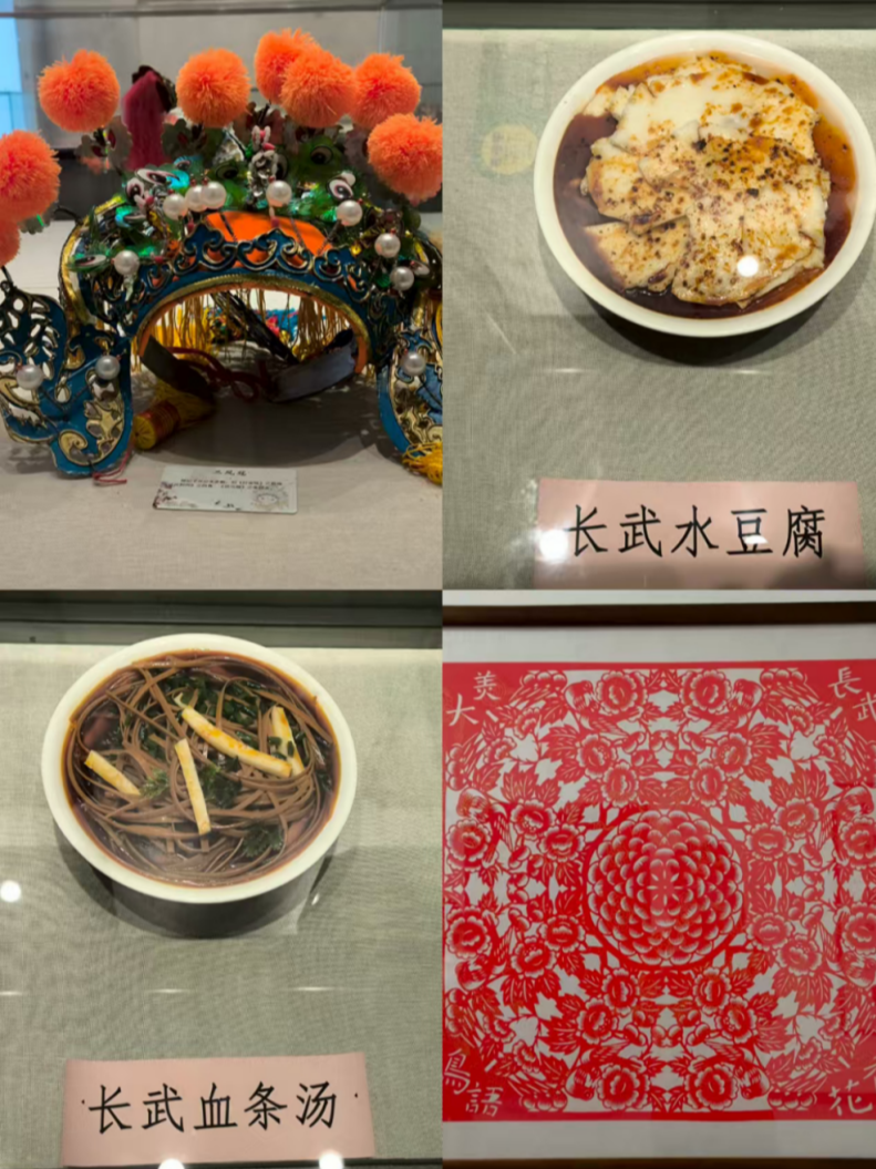 文化馆馆长李林如数家珍,为队员们逐一讲解了馆藏的48项区级非物质文化遗产。从日常饮食蕴含智慧结晶的长武水豆腐,到色彩浓烈、象征吉祥的社火脸谱;从灵动传神的传统木偶戏,到悬壶济世的中医世家传承;从质朴生动的泥塑艺术,到香飘百年的醇古酒酿造技艺,再到寄托巧思的刺绣、寓意美好的牛犊馍以及承载民间传说的柳毅传书故事等等。琳琅满目的项目中,近十项更是荣列省级非遗名录,彰显长武文化底蕴的厚度与高度。随后,馆长特别向实践队员们展示与介绍了多幅融合传统与现代风格的剪纸与绘画作品,其精湛工艺和丰富内涵令队员们赞叹不已。