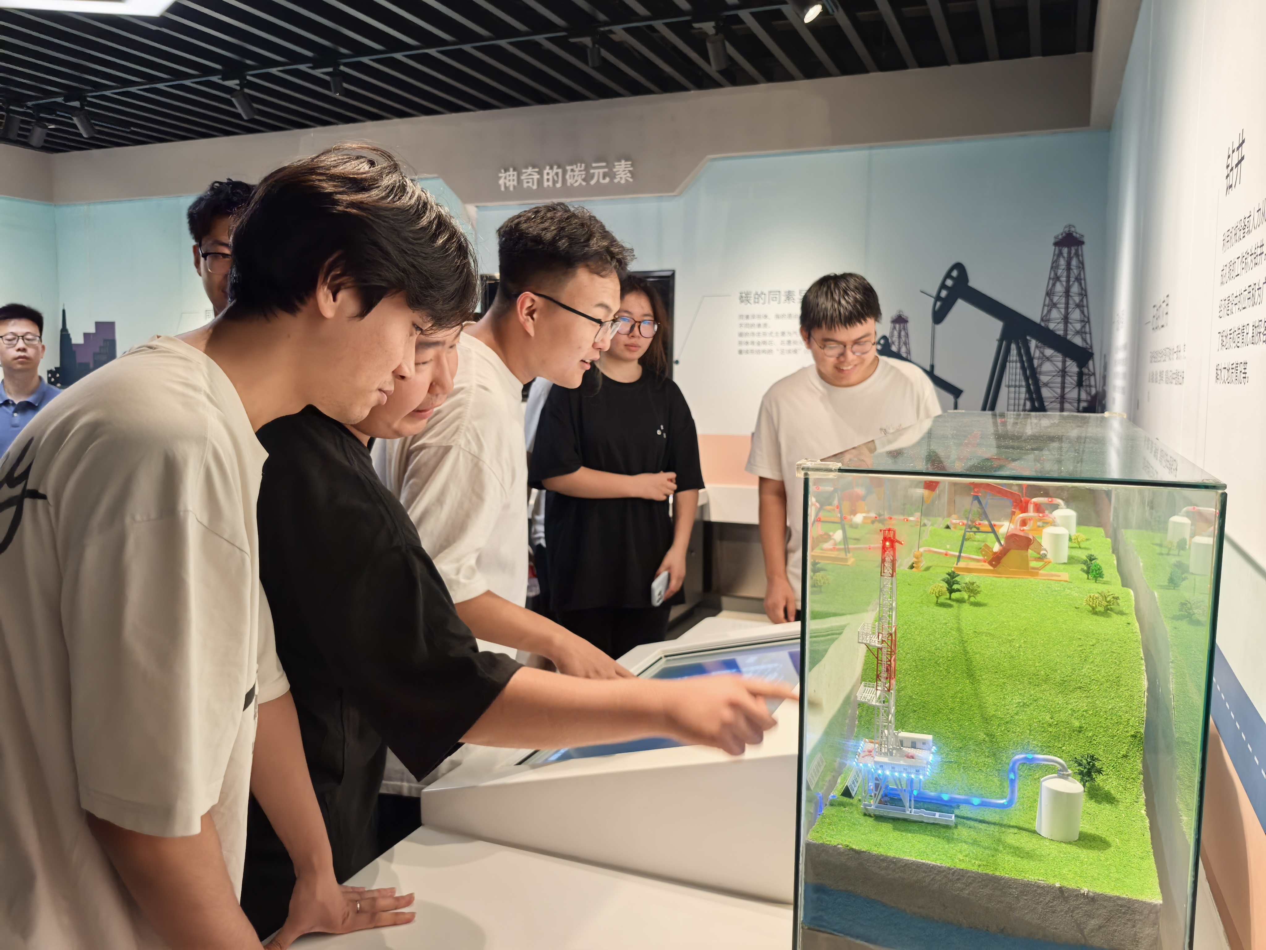 在科技馆内,同学们开启了一场逐层深入的探索之旅:从一层“智慧花园”的光学迷宫、声学互动和光柱游戏中,思考基础科学的奥妙与人机互动设计,到二层“探索乐园”沉浸于将数学、物理、化学理论知识具象化的互动实验与模型前,动手验证课堂所学,再至三层“帝都之光”领略古代工具中蕴含的先人智慧,感悟科技传承与创新的历史脉络,最后登上四层“能源之光”,深入探索煤炭高效清洁利用技术、现代化工绿色生产工艺流程以及新能源开发等核心内容,直观了解科技创新如何在保障能源安全的同时,破解高碳发展难题,推动产业绿色低碳转型。