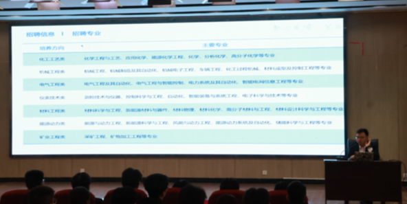 企业负责人通过宣传片和PPT展示,详细介绍了公司发展历程、核心业务及行业前景。他表示公司正处于高速发展阶段,亟需应用化工、煤化工、煤炭清洁利用技术等方面专业人才加入,并重点讲解了2025年校招岗位需求、培养体系及薪酬福利政策。同学们争先恐后地提出自身疑惑,企业团队也为学生提供一对一交流与解惑。
