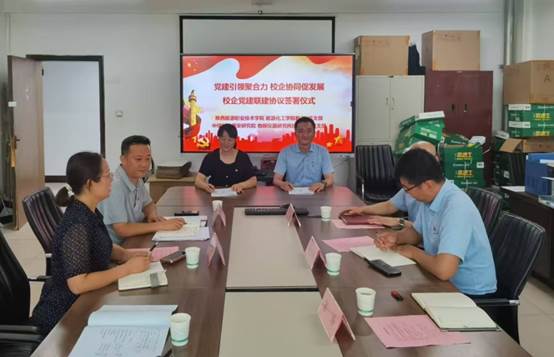 活动上,中煤科工西安研究院(集团)有限公司物探仪器研究所技术工艺党支部书记朱永刚与能源化工学院教工1党支部书记马长玲共同签订了党建合作协议书,并介绍了各自党支部的党建工作开展情况。支部党员就党建联建的内容、载体、目标等进行了深入交流。双方表示通过党建共建,既能实现企业和高校优势互补、资源共享,也能给双方的党建工作带来新的生机活力。双方商定,一是要在组织建设上作文章,积极开展党建工作经验交流、党建方面问题探讨等活动,不断提升党建工作规范化标准化水平。二是在队伍建设上见实效,结合各自单位特色,组织开展学习先进典型事迹、党课宣讲活动等,进一步提高党员干部的综合素养。三是在育人成才上下功夫,在思政教育、创新创业教育、实践教育、社会服务和就业能力提升等方面为学生成长成才创造条件,形成共筑育人“共同体”。