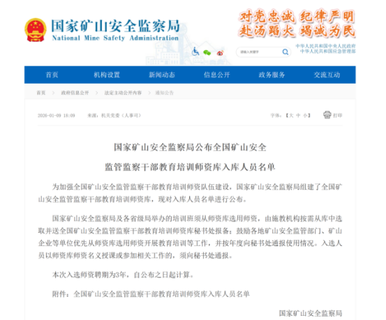 2025年7月,国家矿山安全监察局发布《关于推荐全国矿山安全监管监察干部教育培训师资库人选的通知》,正式启动师资库征集工作。该师资库旨在加强全国矿山安全监管监察干部教育培训师资队伍建设,提升干部教育培训质量水平,对申报人员的专业素养、工作经验、教学能力等均有严格标准,要求申报人员具备扎实的专业基础、丰富的实践经验和突出的教学成果。2026年1月9日,国家矿山安全监察局公布全国矿山安全监管监察干部教育培训师资库入库人员名单,我校能源化工学院教师孟然经国家矿山安全监察局陕西局推荐申报,成功入选。这是我校首次入围国家级矿山安全培训师资荣誉,实现了学校在国家级矿山领域师资库建设领域的又一次突破。