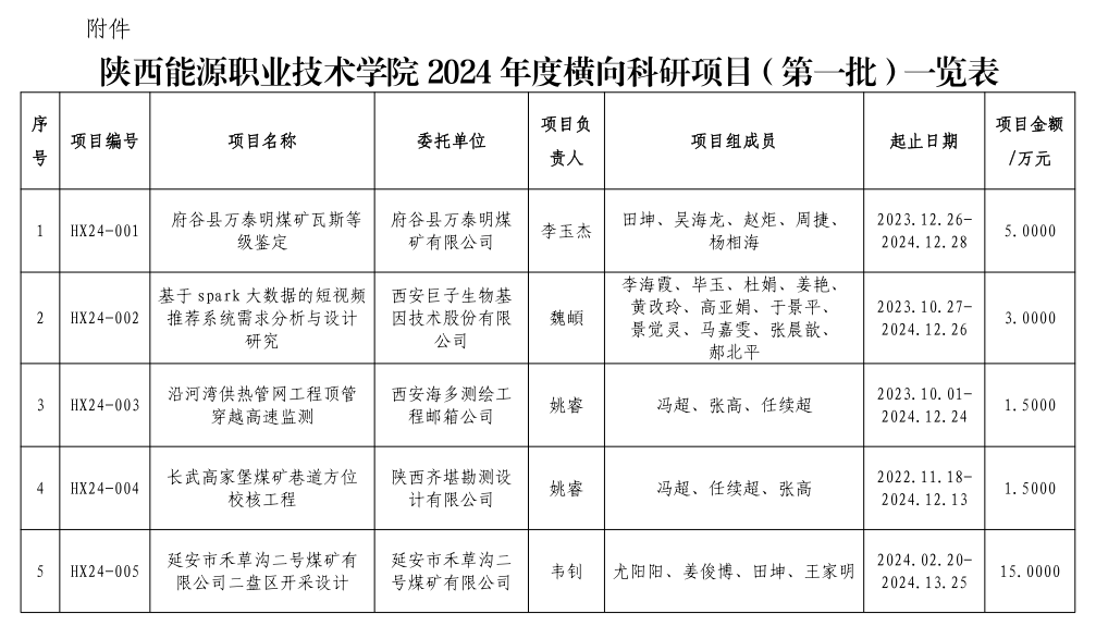 2024年认定横向科研项目
