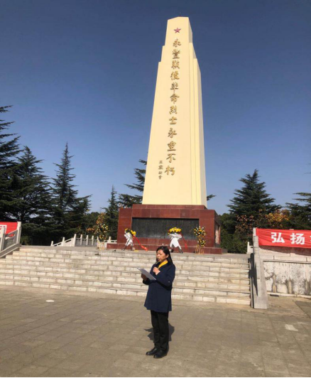 教学总支宣传委员董莉莉老师在烈士纪念碑前大家讲解了永丰战役那段辉煌的历史张富清老英雄先进事迹,让党员们感受到了老英雄不怕牺牲,勇敢战斗、不较个人荣辱,甘心为党和人民的伟大事业奋斗前行奉献精神