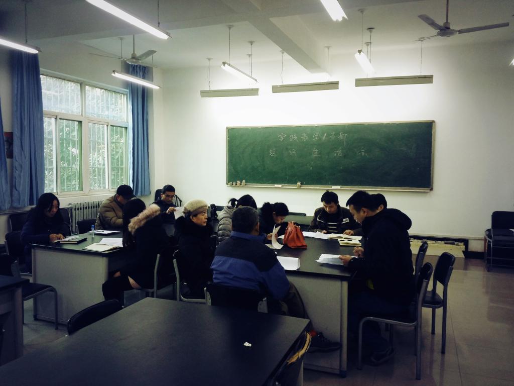 2018年1月11日10:00本支部在地址实验室开展2017年度总结工作,每位党员都从思想、学习、工作等多方面进行自我查摆,14名正式党员1名预备党员分别发言进行自评,支部其他党员对该党员互评,生活会开展的严肃认真,热烈活泼。