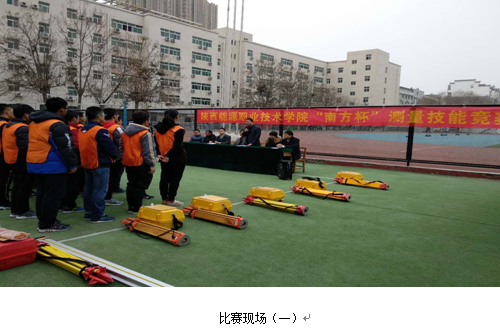 2017年12月29日,由资源与测绘工程学院主办,广州南方测绘科技股份有限公司陕西分公司提供赞助,GIS经理人助理站协助的陕西能源职业技术学院“南方杯”测量技能竞赛在学院操场举行。本次竞赛共有一级测角和二等水准测量两个比赛项目。工程测量技术、摄影测量与遥感等专业的32名学生参加了比赛。经过激烈地角逐,最终刘朋玉、焦敏佳、张洒、周甫四名参赛选手组成的团队获得二等水准测量一等奖,韩永旺、刘毅、祁欢、王衡四名参赛选手组成的团队获得一级测角一等奖。